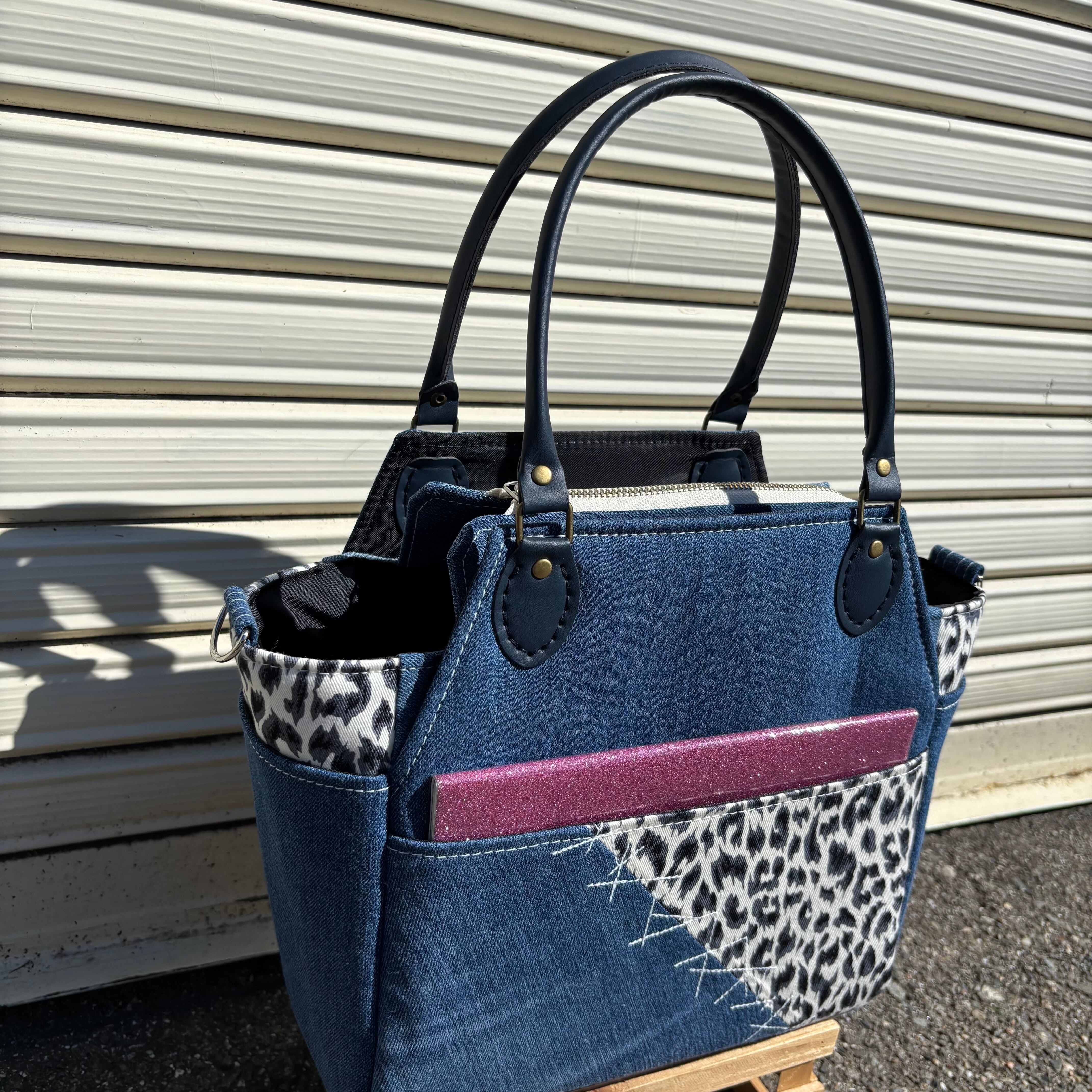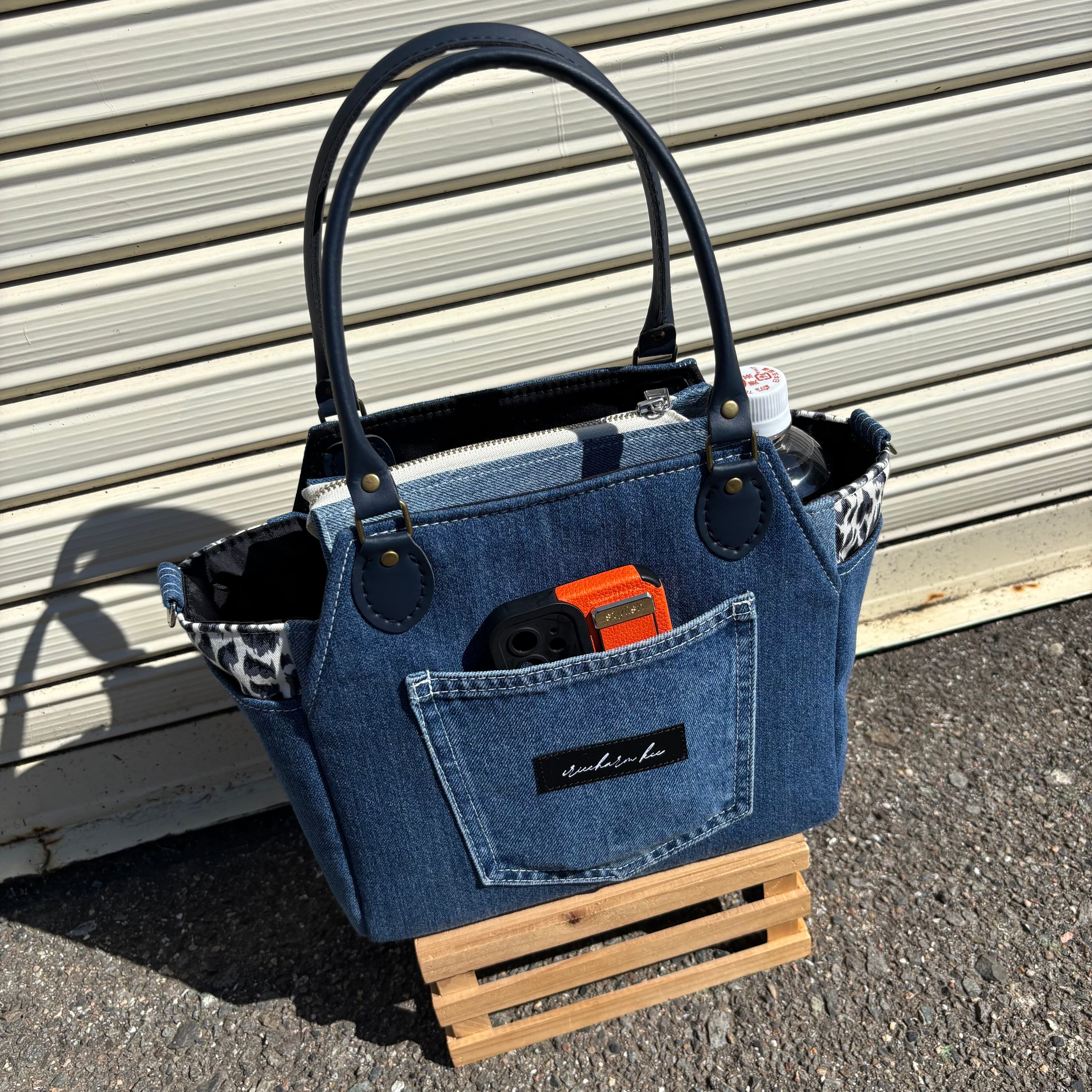 デニムトートバッグ レディース|多ポケット・自立・ペットボトル収納可・底鋲付き