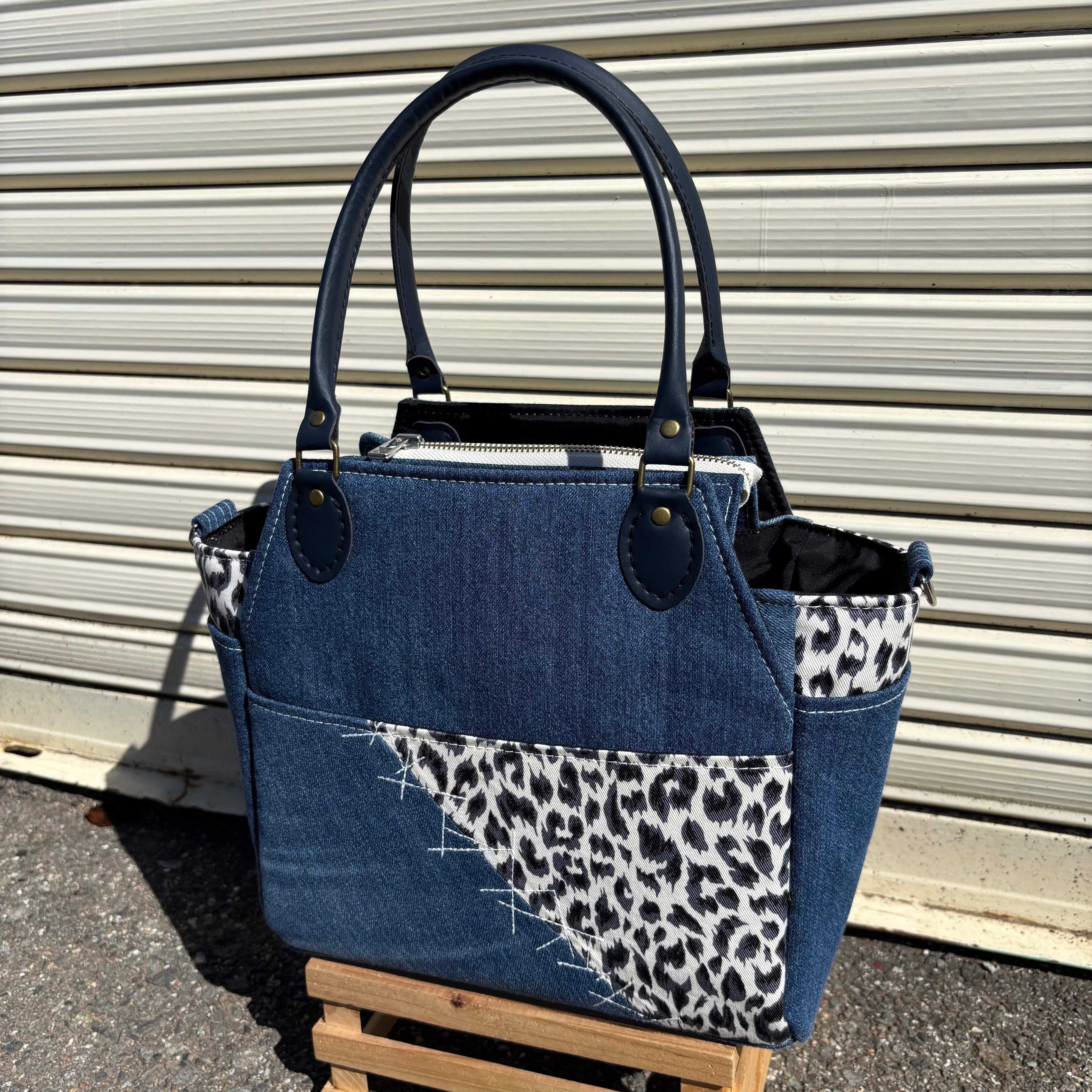 デニム生地を使用した、機能性とデザイン性を兼ね備えたトートバッグ。